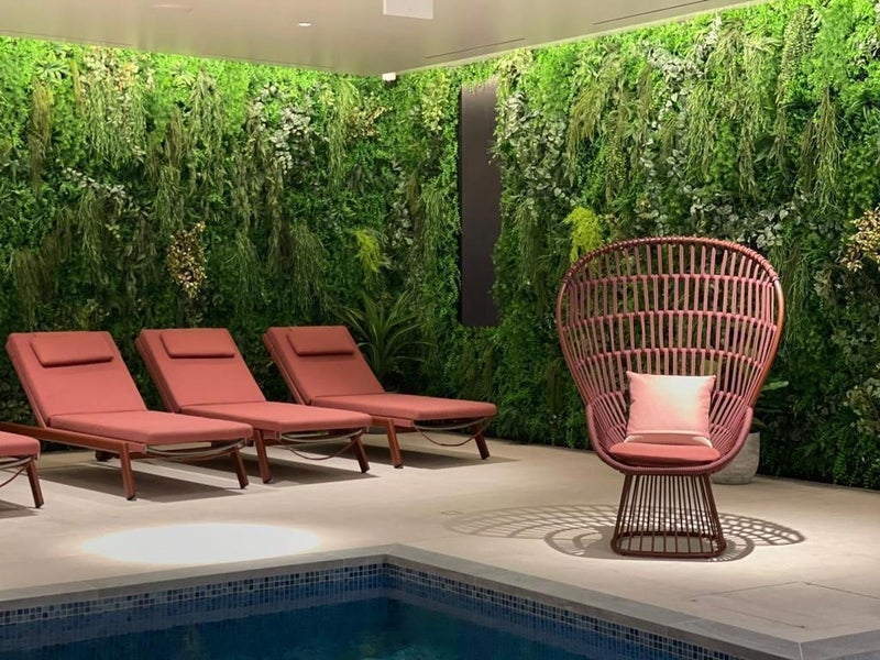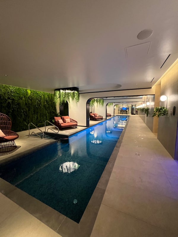 Included Gym, pool, sauna, steam room. Also the flat has a balcony.