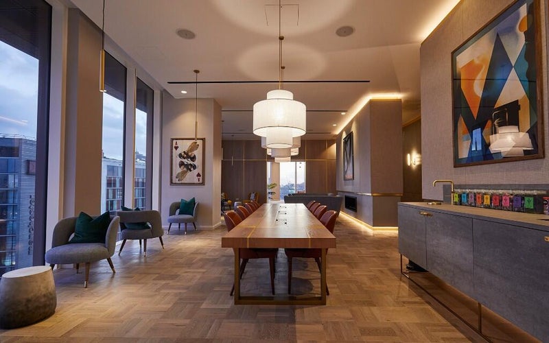 • Residents’ gym included, co-working/lounge spaces, cinema room + private dining