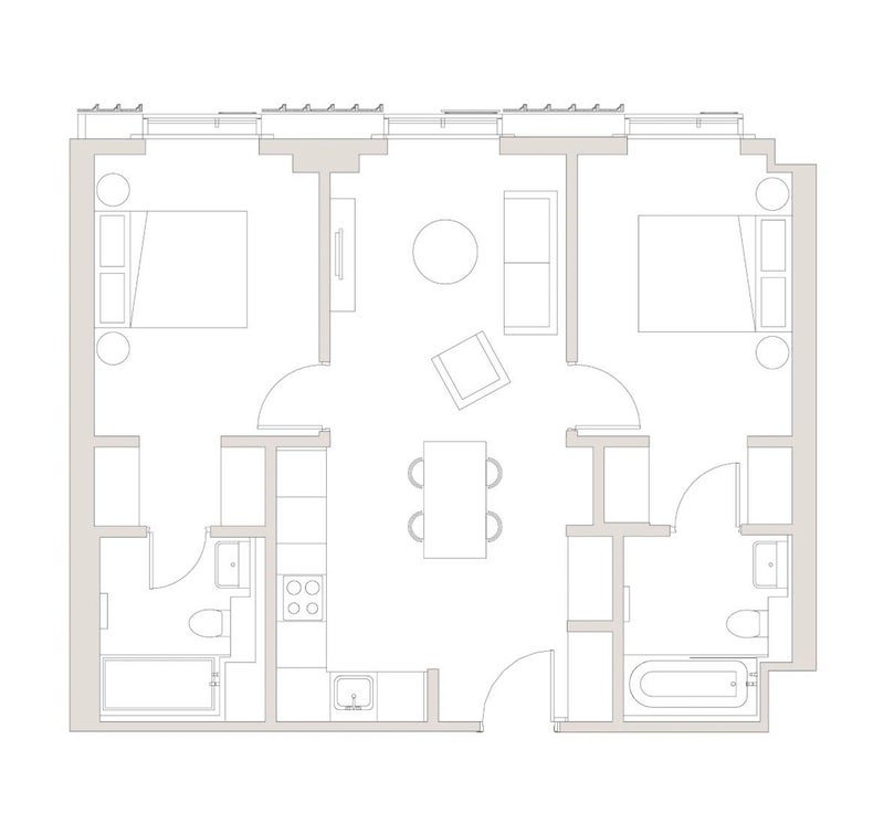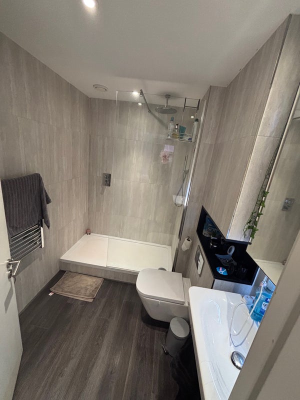 Flat has a luxury shared kitchen and living space, including a dishwasher, washing machine, fridge and stove. Bedroom includes a king sized bed, two double wardrobes and modern en suite bathroom.