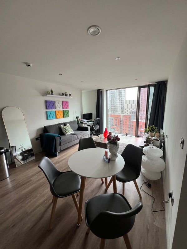 Bright double room available in a modern 2-bed apartment on the 11th floor, offering great views and plenty of natural light. The flat is clean, well-kept and fully furnished, with a comfortable living space and a well-equipped kitchen.