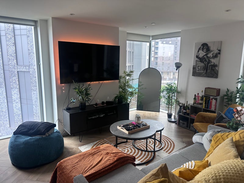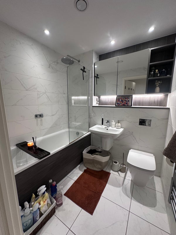 The apartment is modern with a spacious cosy open plan kitchen and living space. The room is plenty spacious and you will have the main bathroom to yourself!