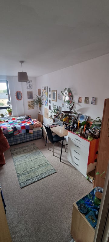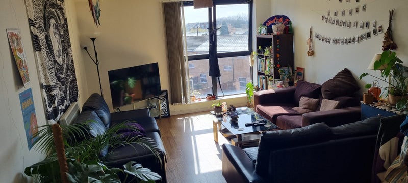 Hello! My friend is moving out so I'm looking for a new flatmate for this double room in Hulme/Moss Side. I've been here almost 4 years and it's a great flat - big living space bathed in sunshine (when we get it) all day! It's a fab location as you can walk into town in half an hour/easy cycle or bus routes too. We're also right next to Alexandra Park if you're a fan of nature :) The flat's fully furnished and in your room you'll get a double bed, wardrobe, chest of drawers and two small dressers.