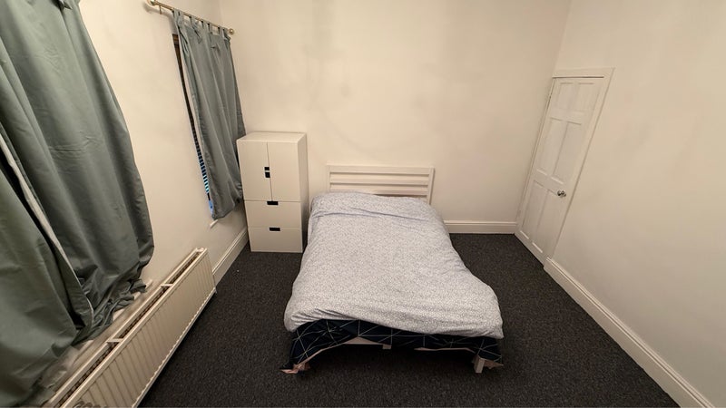 🛏️ 1 double bright room with single bed, a cupboards and one built in storage and Drawers with plenty of storage space.