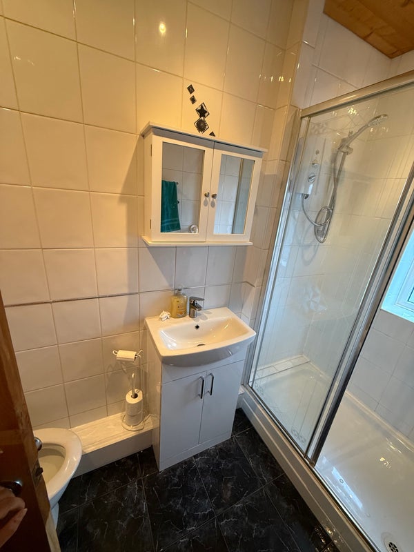 🛀🏻 1 toilet with walk in shower, basin with storage & mirror