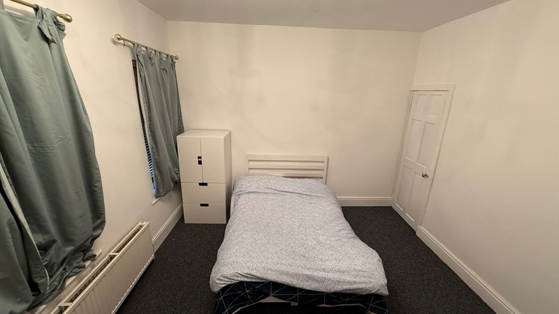 🛏️ 1 double bright room with single bed, a cupboards and one built in storage and Drawers with plenty of storage space.