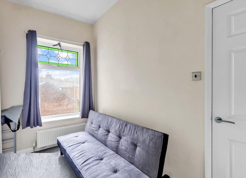 Second bedroom ideal for a child’s room, office, or guest space. uPVC double-glazed window and radiator.