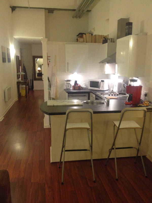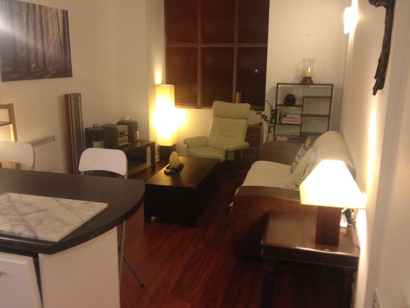 The flat comes with a double bed and two bedsides, a three seater leather sofa (real leather), small coffee table and TV stand, floor lamp for the living room, fridge/freezer, dishwasher, set of crockery and set of pans, microwaves and kettle.