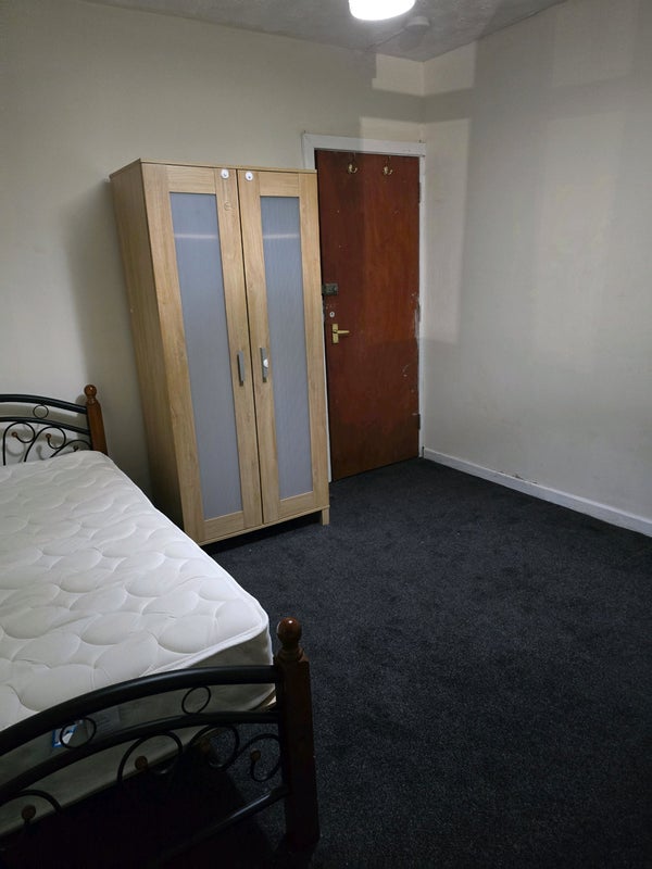 This is a Double Room with Single Bed, Wardrobe, Handwash Basin and space to put own furniture and office desk etc as required. You will have access to 2 bathrooms with showers. Other communal facilities include the Dining room and Kitchen. Rent advertised includes all bills. Situated close to all amenities and town centre and easily commutable to Manchester. No Pets, No Smoking, No Alcohol, No Pork.