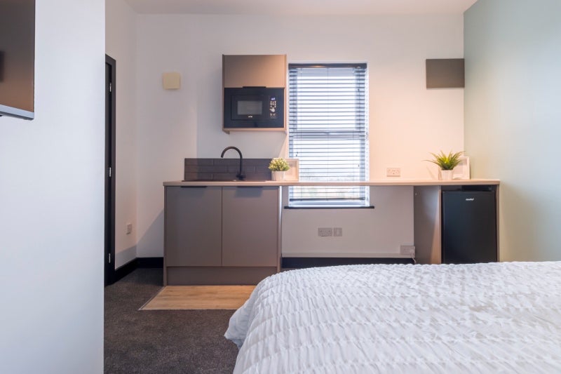 - bed with storage drawers, comfortable mattress, bedside cabinet, wardrobe, workspace with chair/stool, 32’inch smart TV, towel rail, full height dressing mirror and LED bathroom mirror with shaver socket point provided in each room.