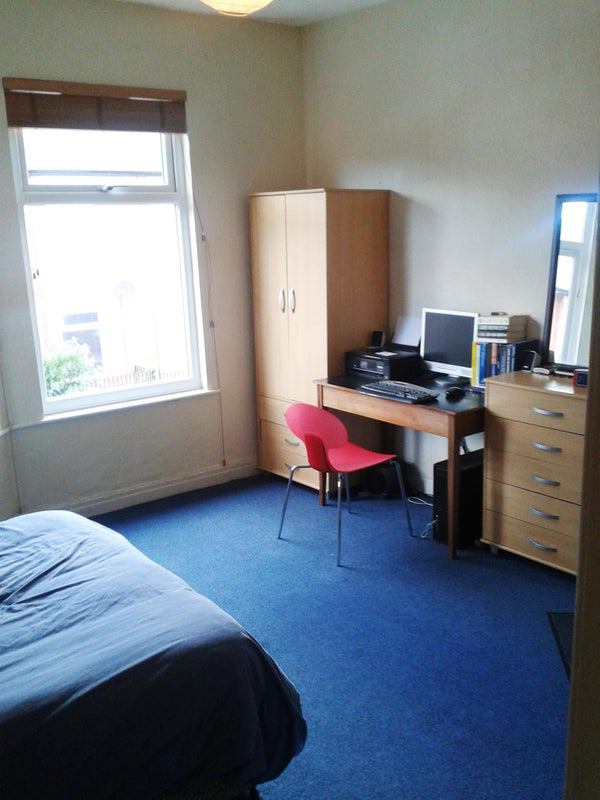 Clean well maintained stylish house with laminate flooring and modern furniture. Would suit mature students, post grads or professionals over 21 up to 29 Shared lounge and kitchen, large bathroom. Kitchen with electric cooker, washing machine and new fridge freezer, recently renewed valiant combi-boiler and recently fitted double glazing throughout. Spacious sitting room. Bike shed and tidy back yard, with seating. Gated alley good for security.