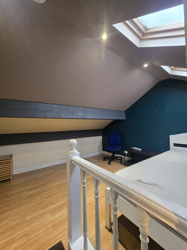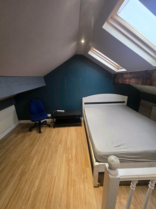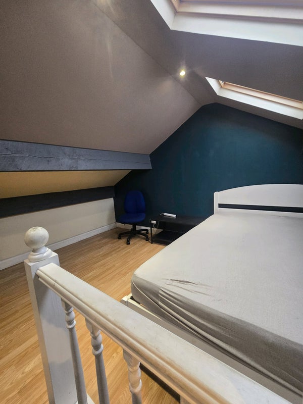 Cozy loft room for rent in shared accommodation. Spacious and nice. Two bathrooms and showers. 2 min walk from bus station