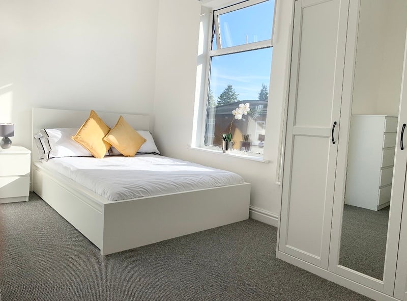 [TAKEN] Room 3 (£625 pcm) – Recently Renovated - First Floor Bedroom En-Suite freshly painted with brand new furniture including large double bed, under bed storage units, twin cupboard, chest of drawers and fitted mirror. This room also benefits from its own private en-suite (Toilet, Basin, Large Shower and mirrored storage cabinet) for added privacy and comfort.