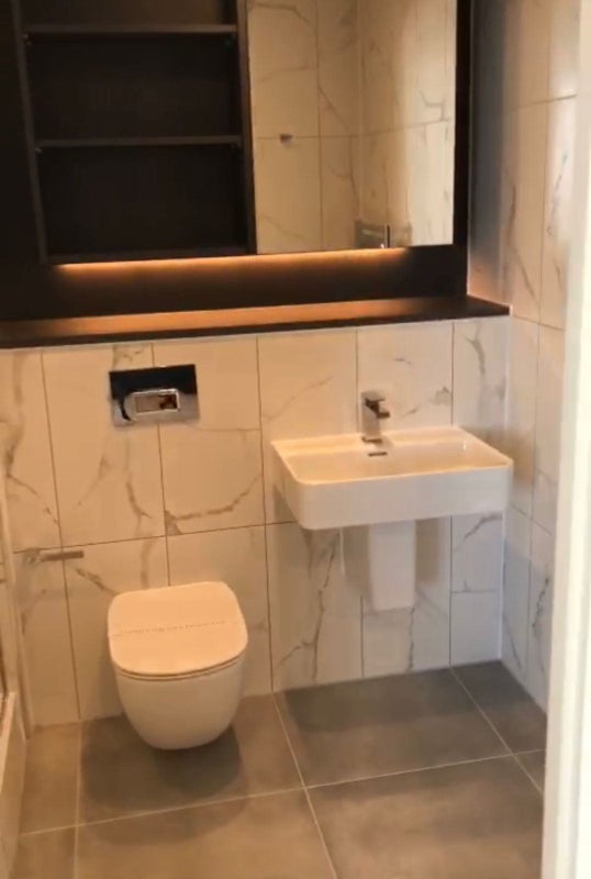 The flat is furnished new build, includes double bed, double closet, two bed side tables, 3 sitter comfortable sofa and table. There is a lovely fitted kitchen with full length fridge freezer, microwave, dishwasher, washing machine, cooker and induction hob. 3 chairs with fitted eating and working table, luxury bathroom with rainfall shower.