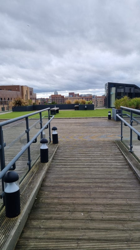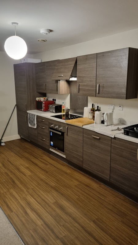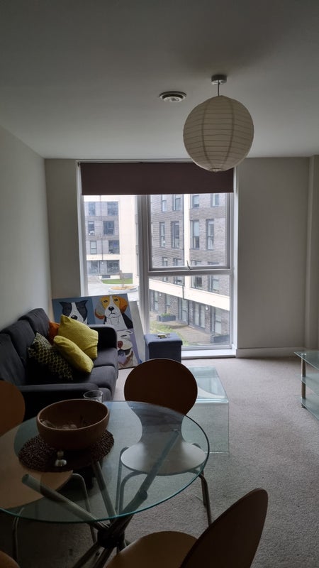 The apartment has two double bedrooms, one shared bathroom, and a spacious living room/kitchen. There’s also a fantastic rooftop with amazing views over Manchester. The house is super close to Cornbrook tram station, there’s a Co-op in the building, and two gyms just 5 minutes’ walk away, so it’s really convenient for everyday life.