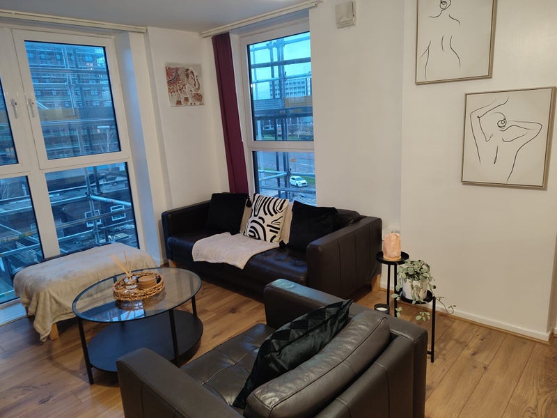 Furnished 2 bedroom apartment available in high-rise building right opposite Salford Crescent train station. Available from early March, £1250 (bills not included).