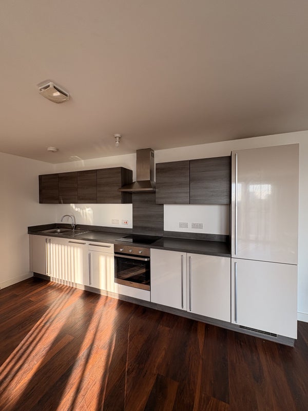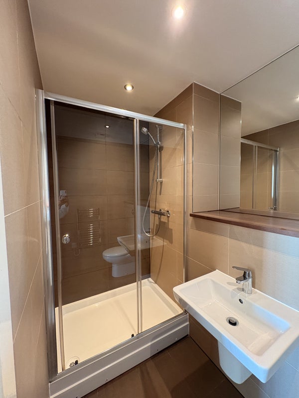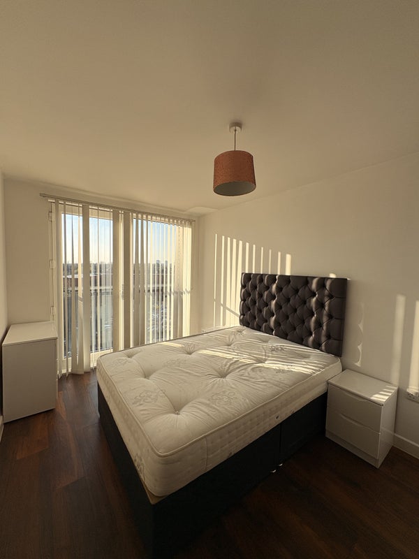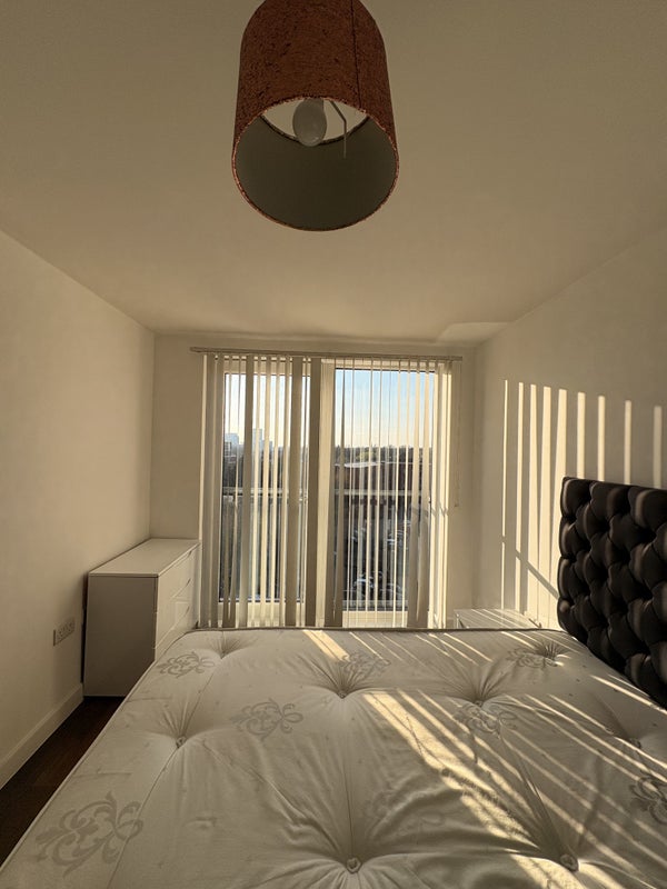 Modern, light, airy and spacious room and en-suite with shared kitchen and living area! Bedroom is furnished and open plan, with juliet balcony and fantastic sky line views of the city!
