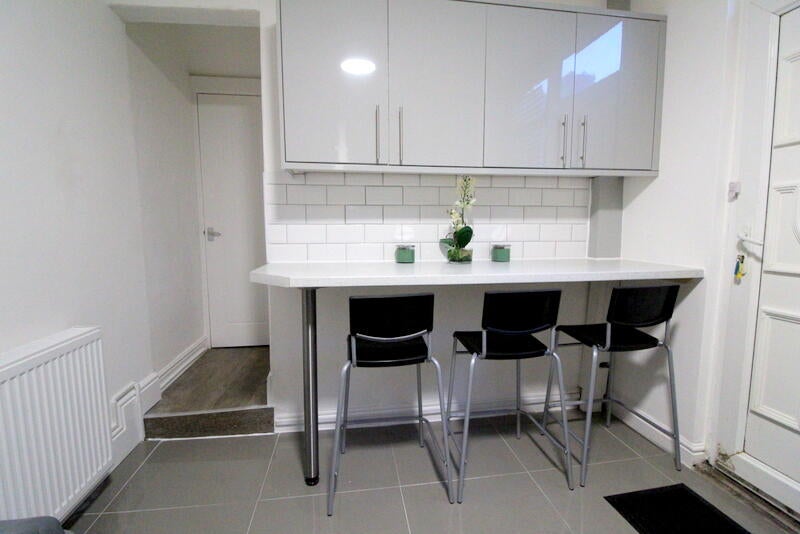 The communal kitchen comes with all amenities including hob, oven, microwave, fridge/freezer, washing machine, kettle, toaster