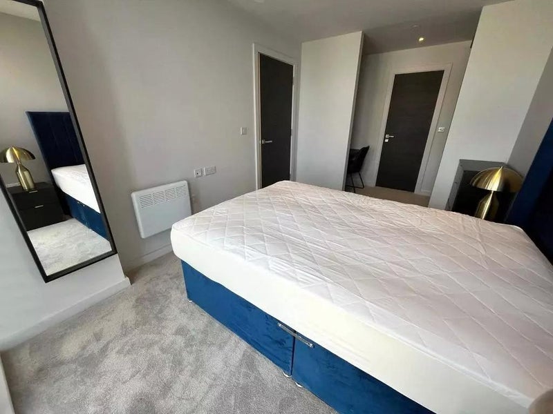 A 1-bed en-suite room is available in a furnished 2-bed flat with a kitchen, living room and washer/dryer. Located in Greengate, Salford, close to Victoria Station and City Centre.