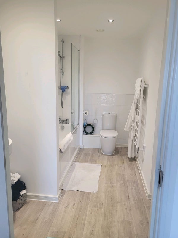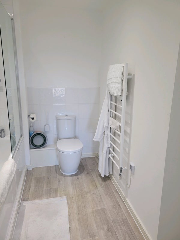 Your own private en-suite with full bath, overhead shower, and heated towel rail.