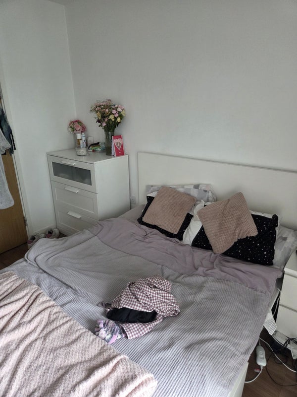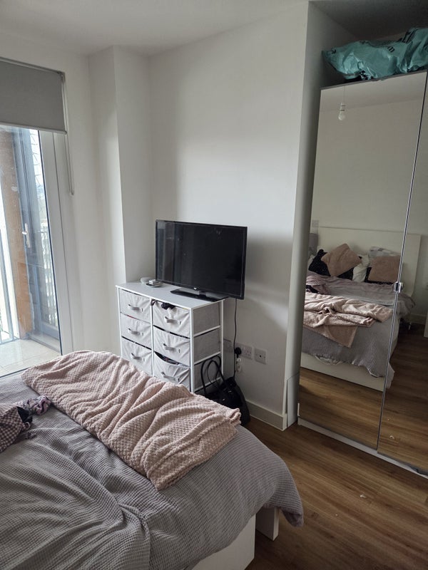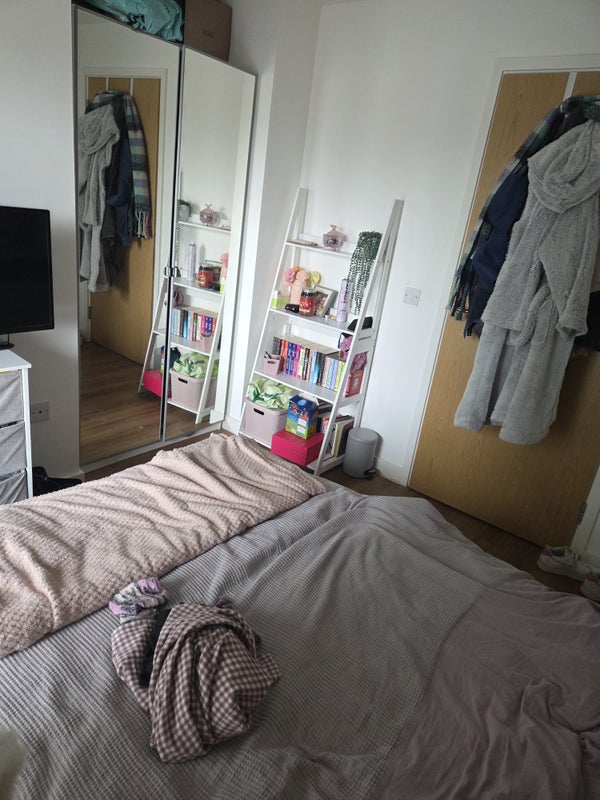 Hi, I'm Mollie, a young professional (21), I have a double room available from 14th June. The flat is located in Salford quays right opposite the tram stop so great connections into the city centre (15 minute ride) and a lot of shops and food/drink places nearby as well. Rent is £625 a month with bills working out around £90, excluding council tax (band b).