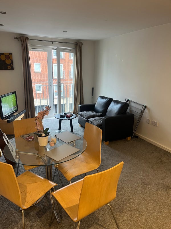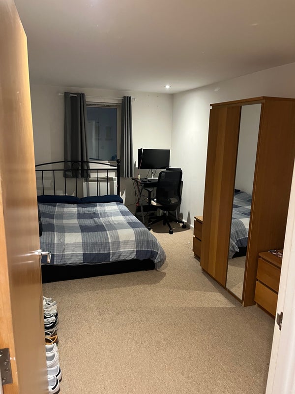 A bright and generously sized double room available in a well-maintained 2-bedroom apartment in the heart of Salford Quays.