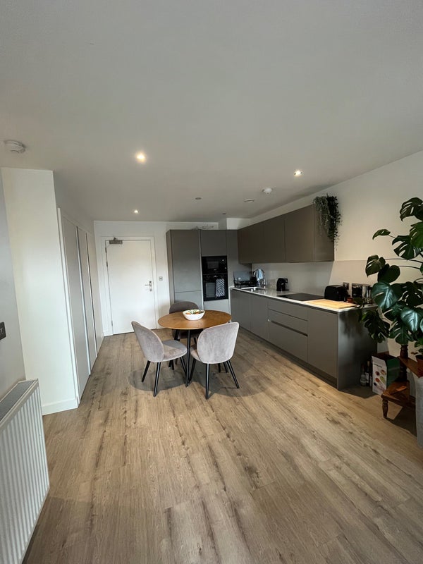 The flat is genuinely stunning. You’ll have a spacious double bedroom with your own private bathroom located directly outside the room (not shared). There’s also a bright open-plan living room and a fully equipped kitchen with dishwasher and all essential appliances. The balcony gets loads of sunshine in the summer.