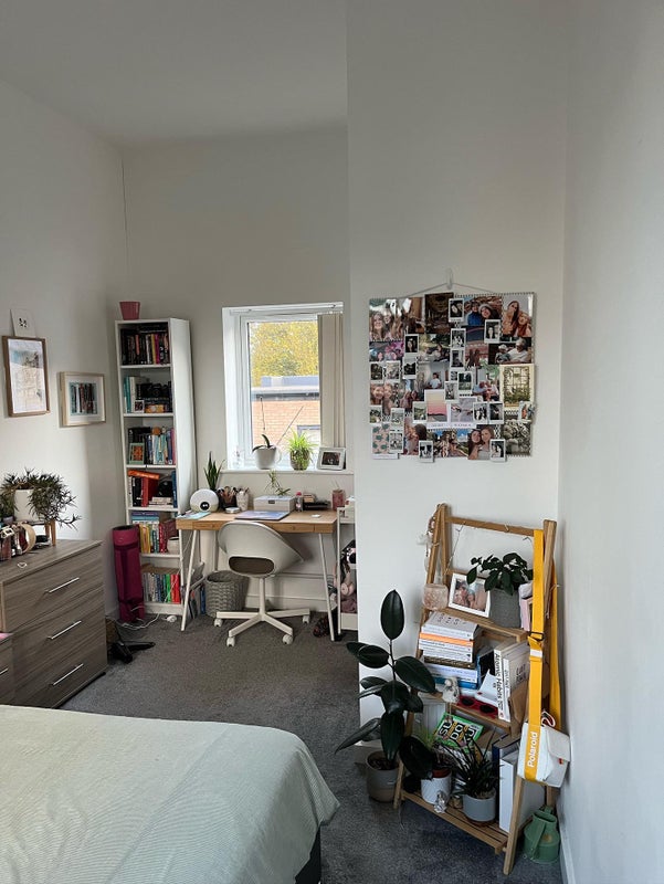 The room is furnished with everything you see in the photos apart from the desk and shelving units, it does also have an en-suite. There are 2 of us currently in the house, we are both easy going, clean and have our own separate bedrooms and bathrooms.