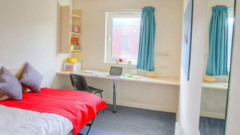 Based on Fredrick Road in Salford, Tramways is a student accomodation. It has an en-suite bathroom, spacious kitchen and double bed with well-sized room. There is a closet for clothes, a sizeable window and a good broadband connection. It is a well placed accomodation, very close to the University of Salford main campus.