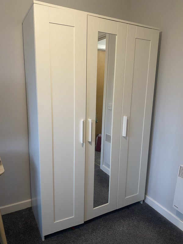 The room is a good-sized double and comes with the white wardrobe and double bed - please note the table, PC and plug adapter shown in the photos won’t be there!