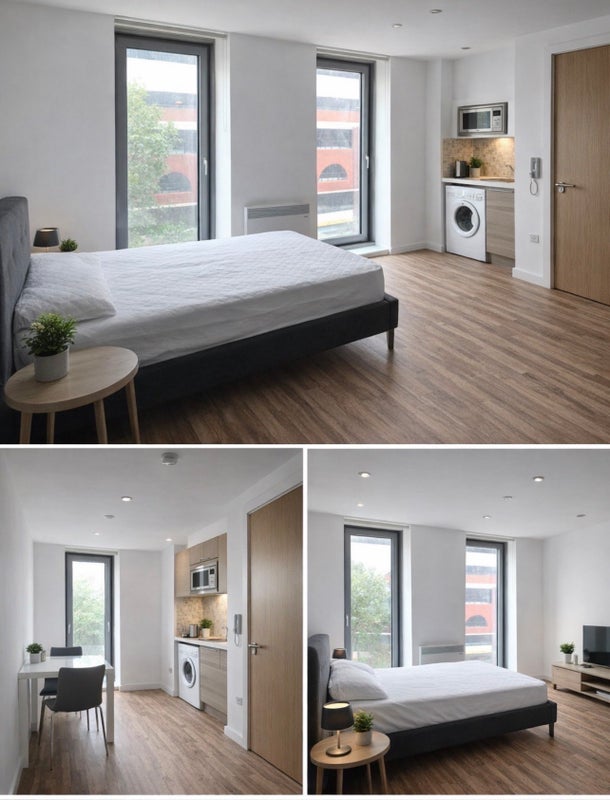 A bright and modern studio flat available in the highly sought-after area of Salford Quays. Perfect for a professional or student looking for a comfortable and private living space in a fantastic location.