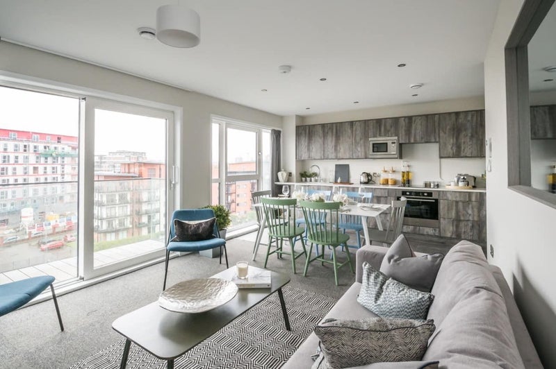 The apartment is situated right on the canal with stunning views across Pomona, the canal and right down to media city. It has a balcony where you get the sun most of the day right up until the end of golden hour.