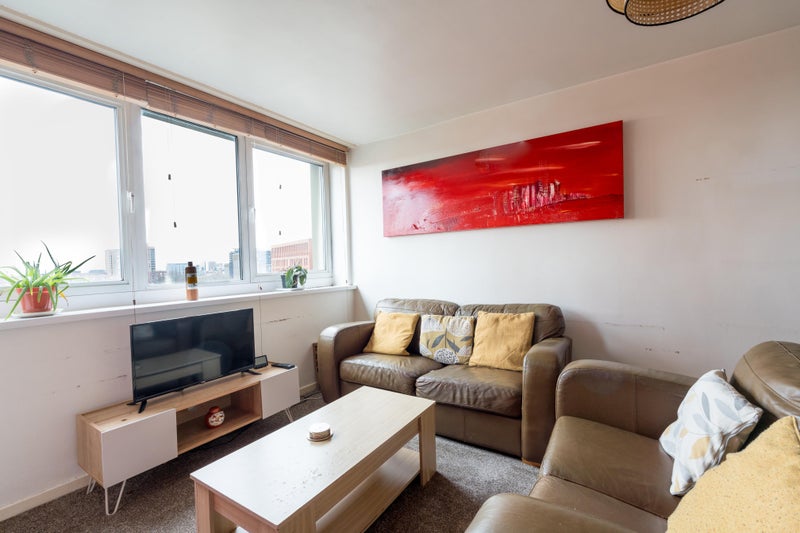 A bright double room is available in a well-kept flat in the heart of central Manchester (St George’s), offering impressive views across the city.