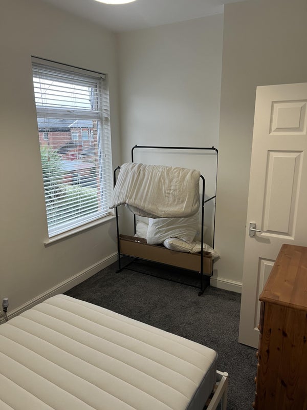 A decent-sized furnished double room is available in a friendly two-bedroom house in Edgeley, Stockport. The house has a separate dining room, kitchen, and living room, offering plenty of shared space. Free on-street parking is available.