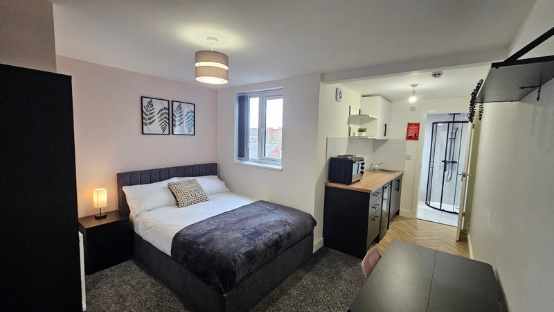 Newly refurbished, boutique‑style self contained studios including own kitchenette and en‑suite in a high‑spec professional house share just moments from Stockport town centre.