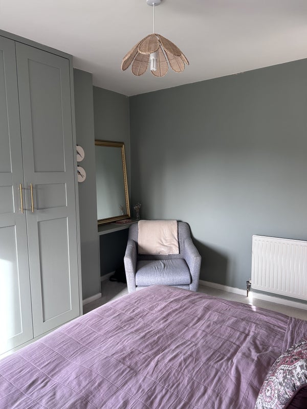A bright and spacious large bedroom, located in a well-maintained house on a quiet residential road in Chorlton/Stretford near Stretford tram stop.
