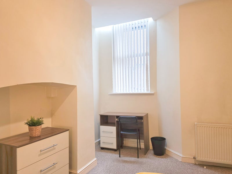 It's fully furnished with faux leather bed, wardrobes, beside drawers, chest of drawers and desk with chair. The room have a TV point and plenty of socket outlets with Virgin media Business Wifi and mesh system throughout the house.