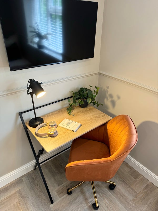 • 🛏️ Fully furnished: orthopaedic double bed, large wardrobe, desk, Smart TV