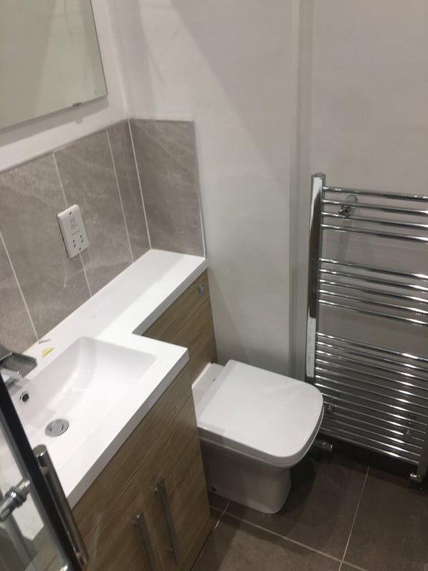 En-suite contains 1200mm double shower tray, large rainfall shower, flexible shower head, WC, basin c/w vanity unit, heated towel rail, extract fan, large mirror and shaving point.