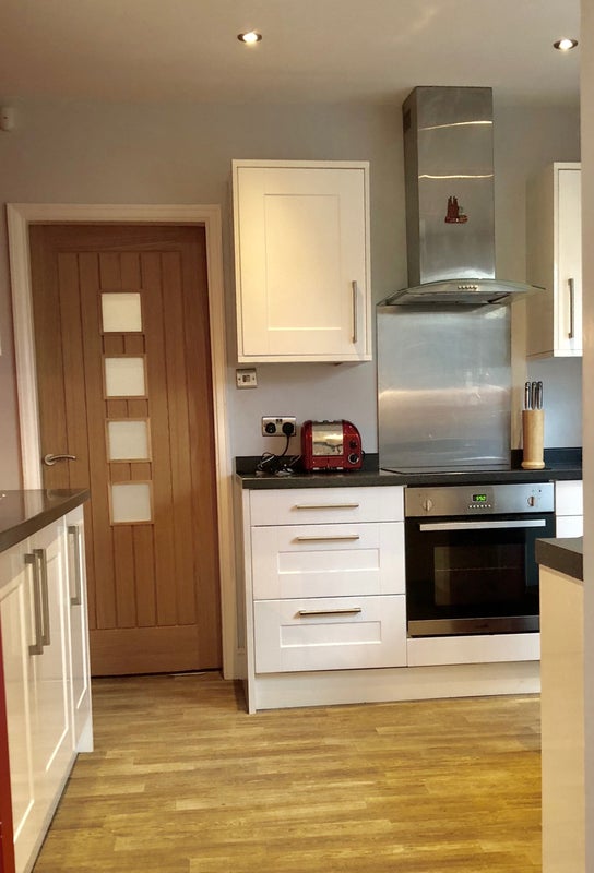 It has access to outdoor dining and garden. It has a built-in washing machine, two fridges, microwave, toaster, slow-cooker, rice cooker, coffee making machine, induction hob, electric oven and a dishwasher. (A dryer and freezer are in the garage).