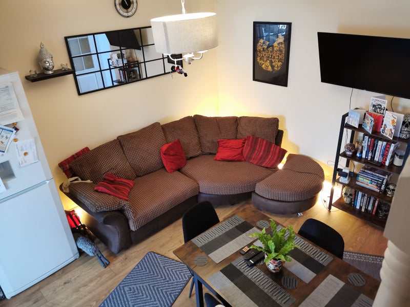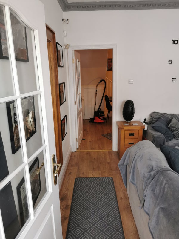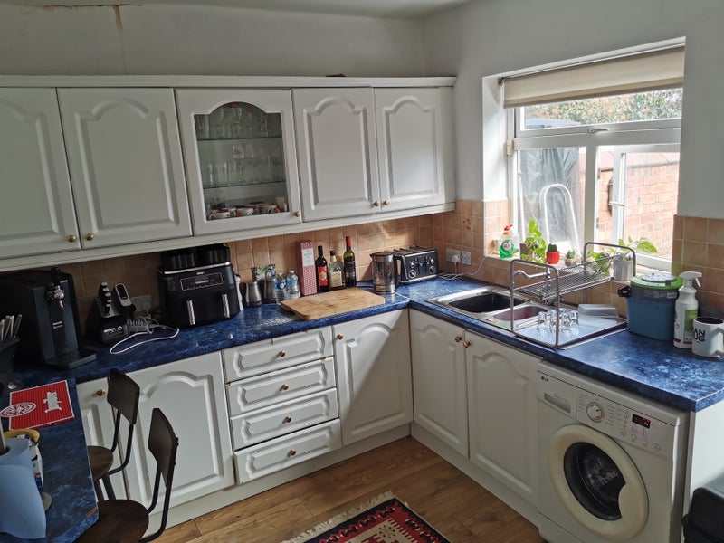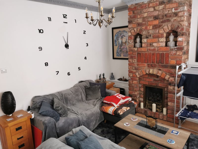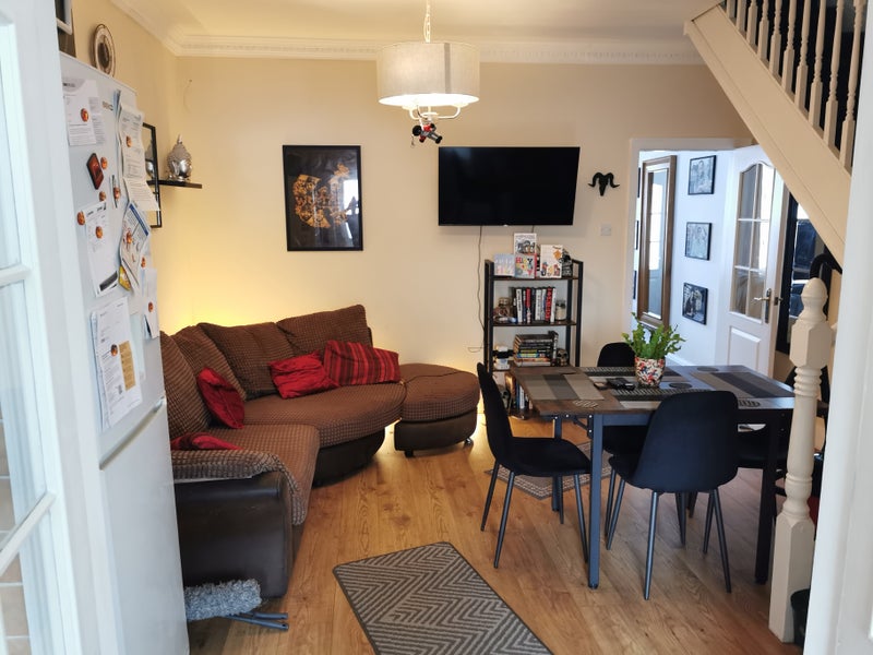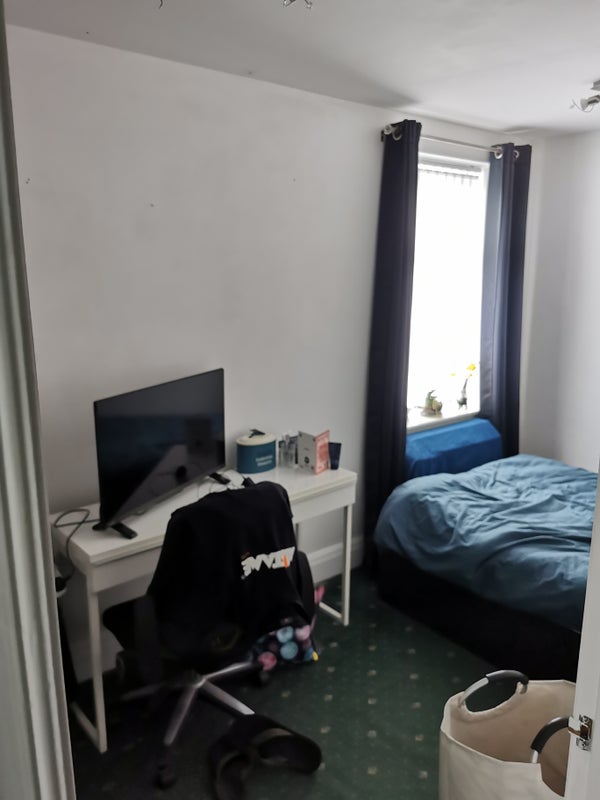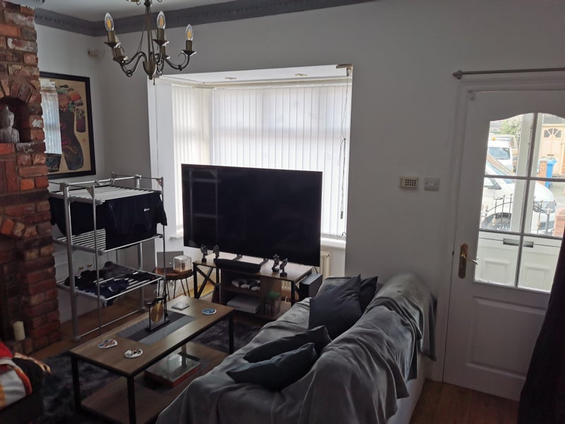 Room available on second floor in house on Urmston Stretford boarder, good sized kitchen and bathroom with a jacuzzi bath. Living room with another dining foom/living room. Full sky package and broadband. Very easy going house with massive back yard with is gated off and great for bbqs. Room has fitted wardrobe and double bed and desk with chair