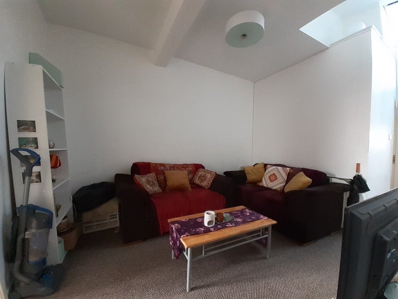 Spacious double bedroom & living room, both bedrooms equipped with an en suite. The room has a computer desk, bookcase, large wardrobe, double bed.