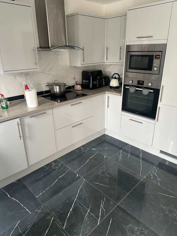 - Modern kitchen and living area