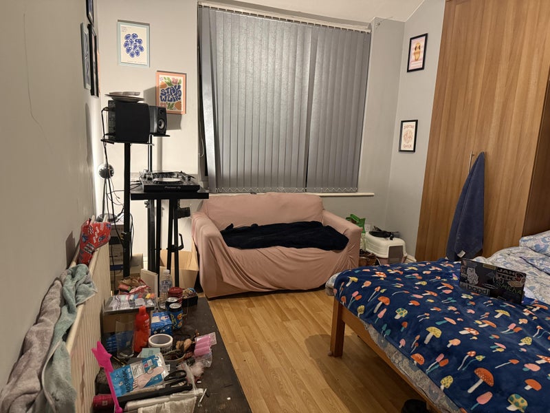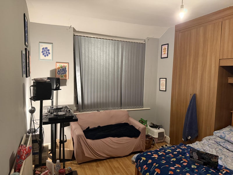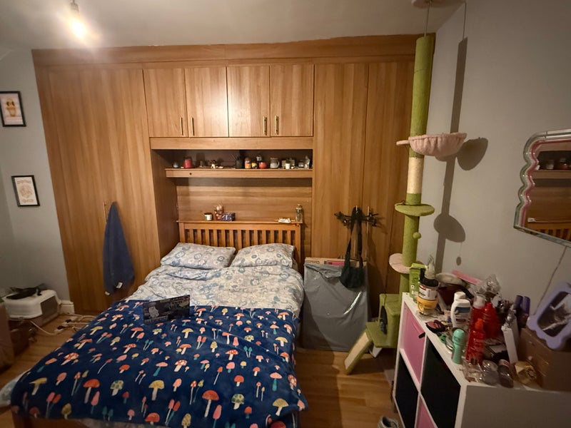 Large double sized bedroom - comes with bed, fitted wardrobes, sofa, and table.