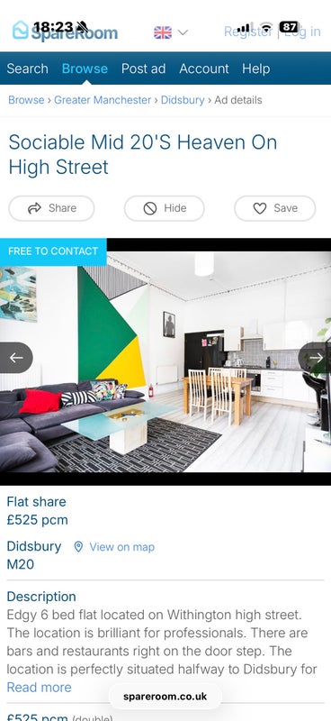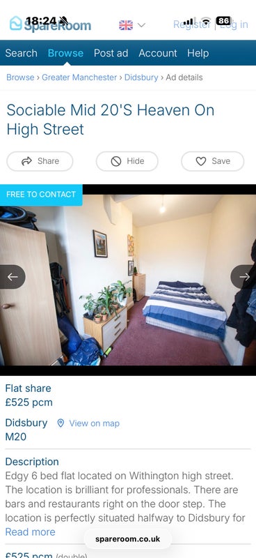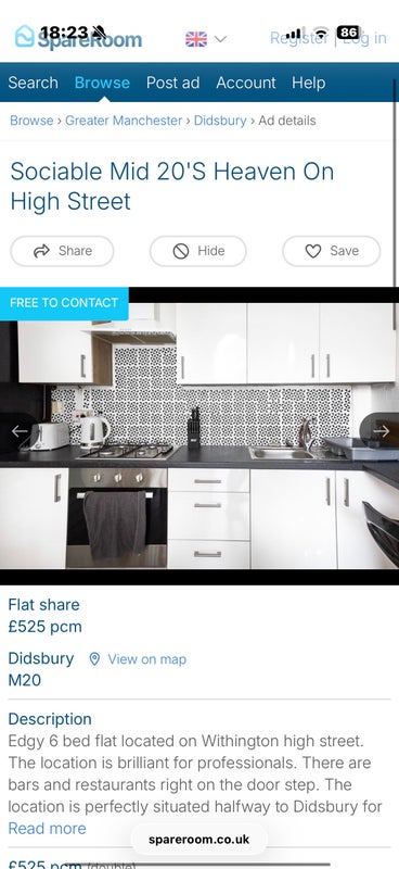 Edgy 6 bed flat located on Withington high street. The location is brilliant for professionals. There are bars and restaurants right on the door step. The location is perfectly situated halfway to Didsbury for your high end cocktails and Fallowfield for your cheap nights.