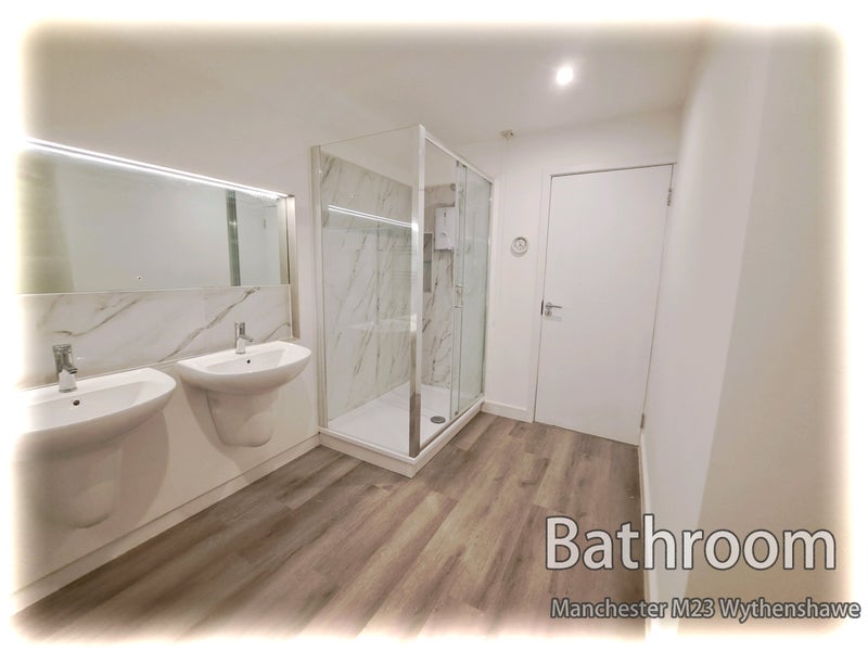 - The main shower room is exceptionally spacious, featuring two individual basins and a sleek LED illuminated mirror.