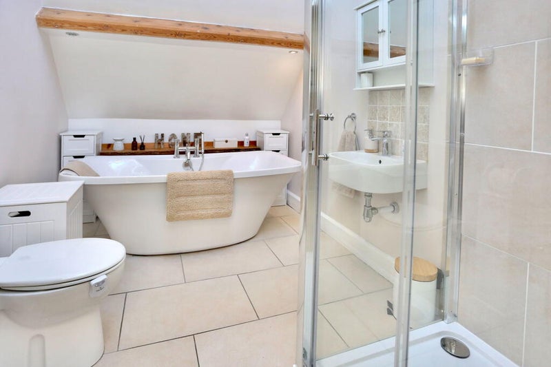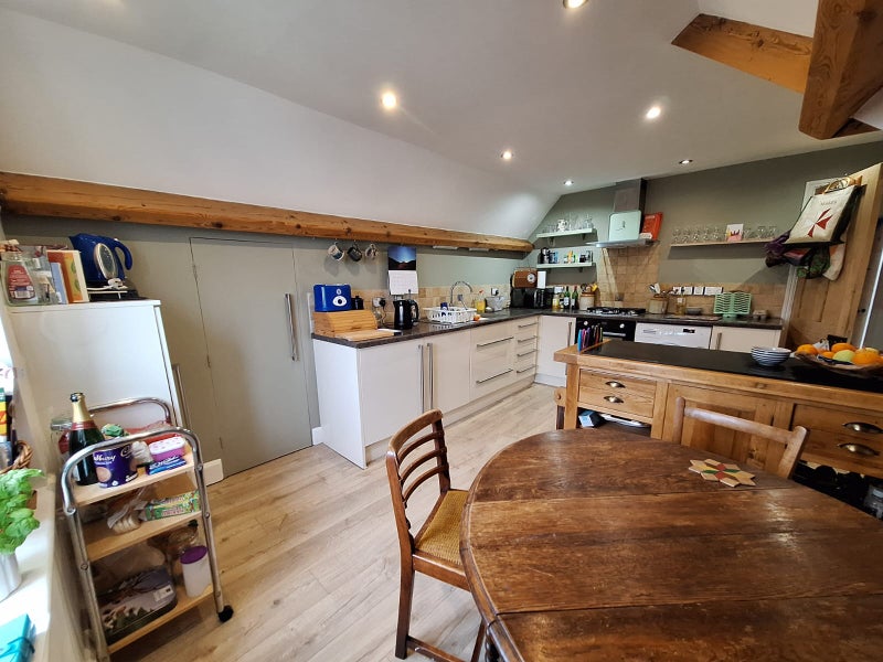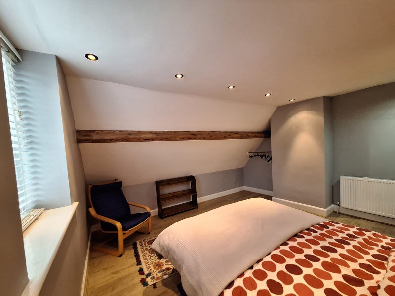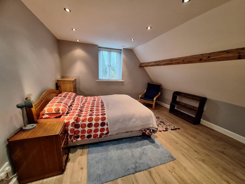 Large double room, with king size bed. Comes with full access to a characterful sitting room, fully equipped kitchen, and modern bathroom. Plenty of storage available and everything from an ironing board to a fondue set provided.