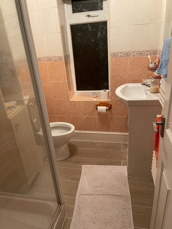 Shower room adjacent to bedroom.