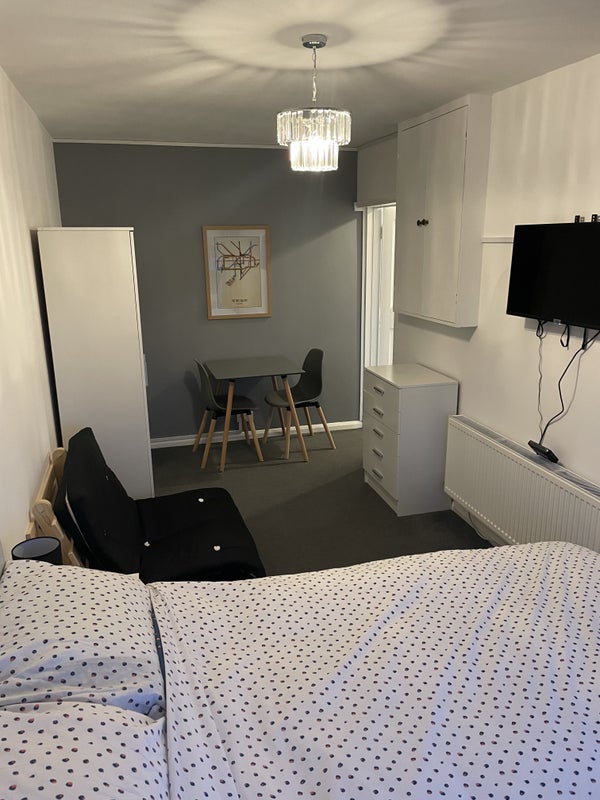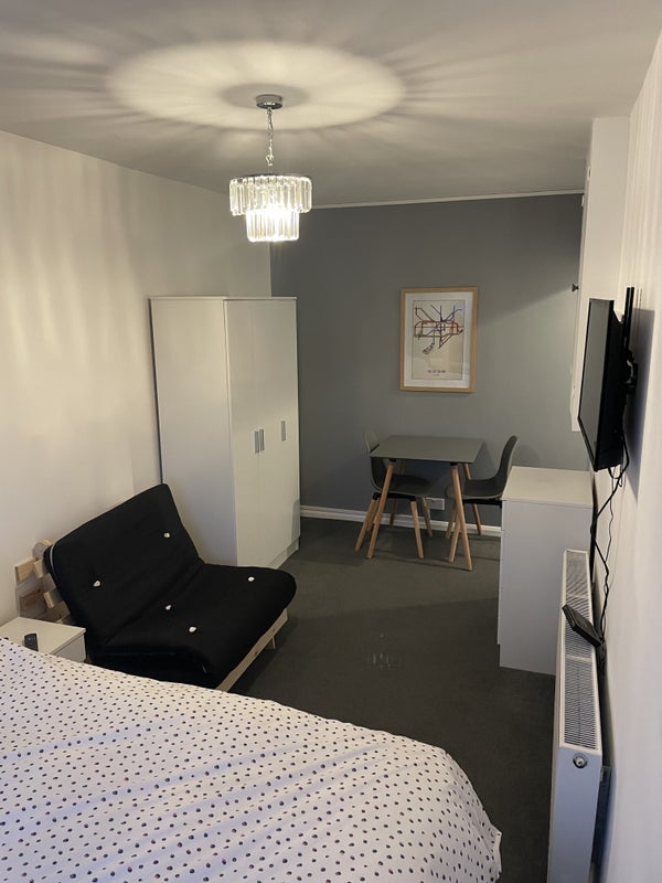 This is a one bed flat with own kitchen , shower room , toilet and large bedroom with sofa to etc , all bills included and parking