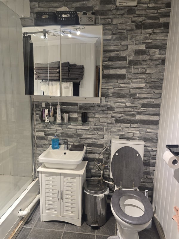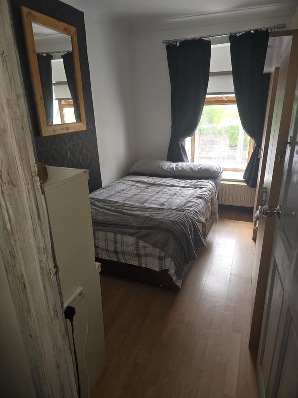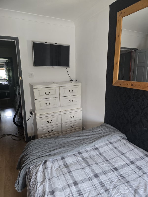 Cosy room with 4ft double bed. 2 Wardrobes , 4 single chest of drawers giving 10 drawers. Smart tv with Roku