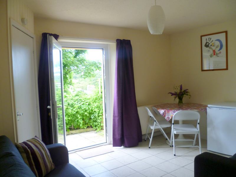 The house has three storeys - with bedrooms on the ground and first floors. All the shared facilities are on the lower ground floor - a kitchen with washing machine and tumble dryer, a bathroom with shower and a lounge/dining room. There's also an enclosed patio area, accessible from the lounge room.
